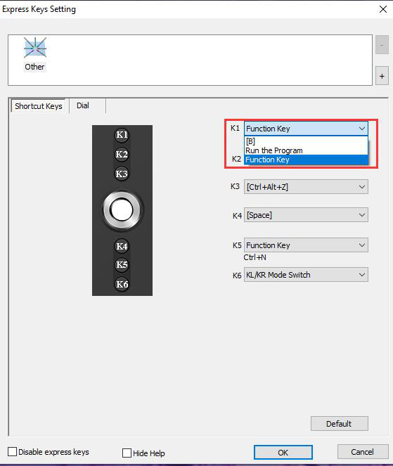여기에서“익스프레스 키 세팅”을 클릭하여 타블렛의 키를 사용자 정의 할 수 있습니다.