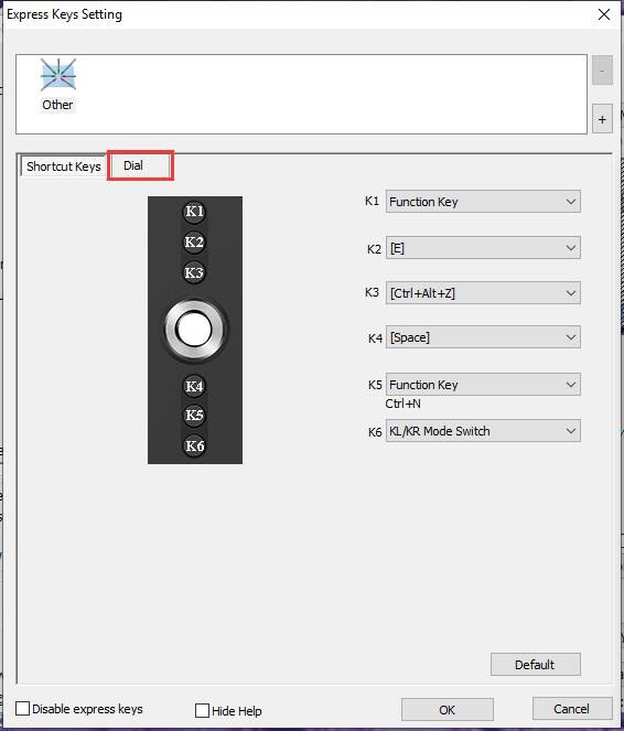 여기에서 모든 익스프레스 키와 스크롤 휠 (타블렛에 있는 경우)을 구성 할 수 있습니다.