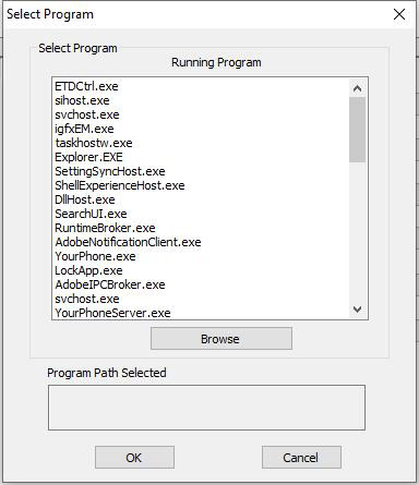 더하기 (+) 기호 버튼을 누르면이 창이 나타납니다. 이 목록에서 PenTablet 설정에 추가 할 프로그램을 선택할 수 있습니다. 원하는 프로그램이 보이지 않으면 찾아보기를 클릭하여 수동으로 추가 할 수 있습니다.