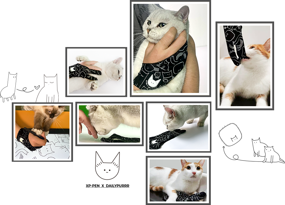 이제 XPPen은 @dailypurrr과 협력하여 그의 미니멀리스트 고양이 그림을 우리 드로잉장갑에 넣습니다.