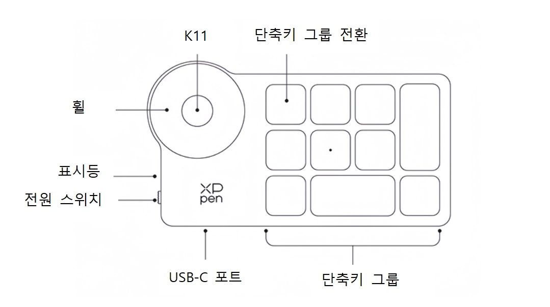 a. 무선 단축키 키보드의 전원 스위치를 켜면 무선 단축키보드 표시등은 파란색으로 서서히 깜빡입니다. K11 버튼을 6초 동안 길게 눌러 페어링 모드로 진입하면 표시등이 파란색으로 빠르게 깜빡입니다.
