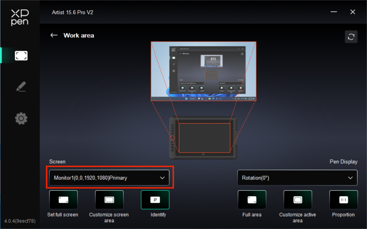 현재 모니터의 디스플레이 영역과 기기 간의 매핑을 설정할 수 있습니다.