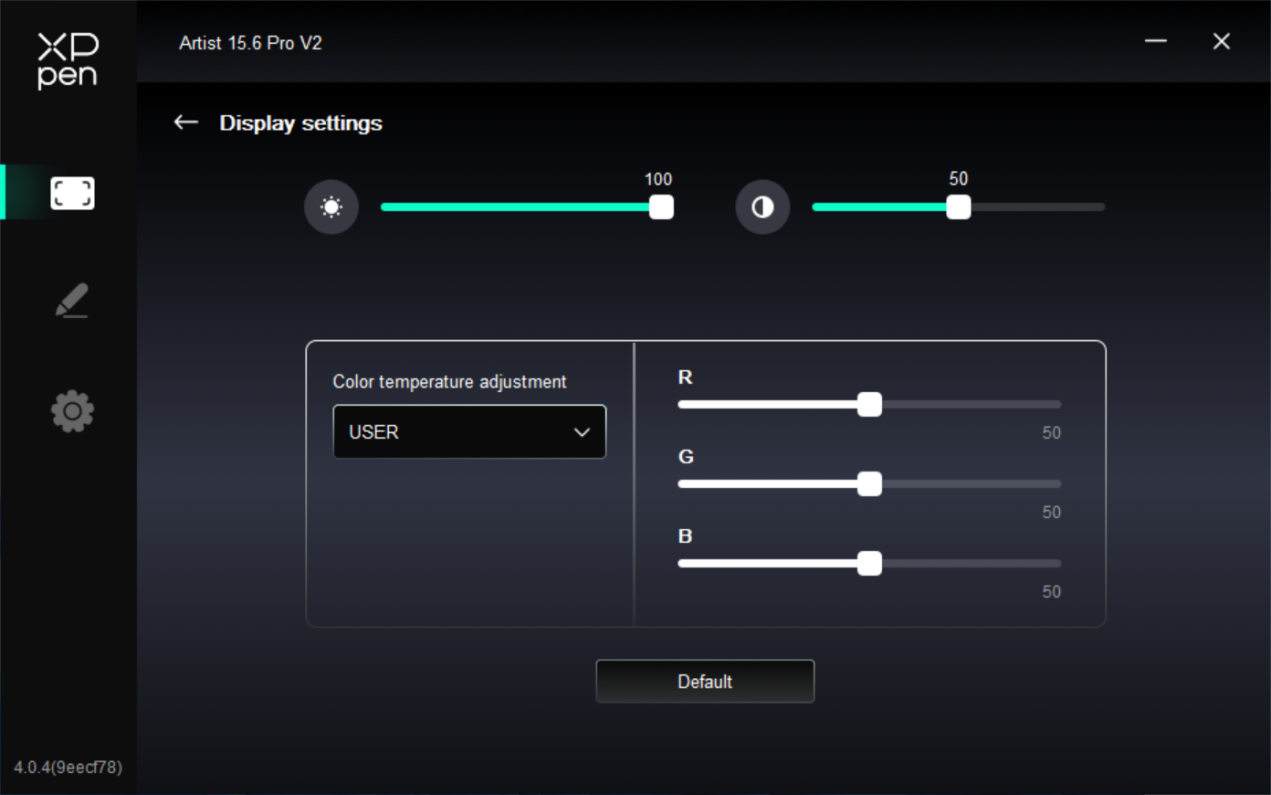 색온도: 드라이버는 5가지 모드를 제공합니다: 5000K, 6500K(기본값), 7500K, 9300K, USER.
