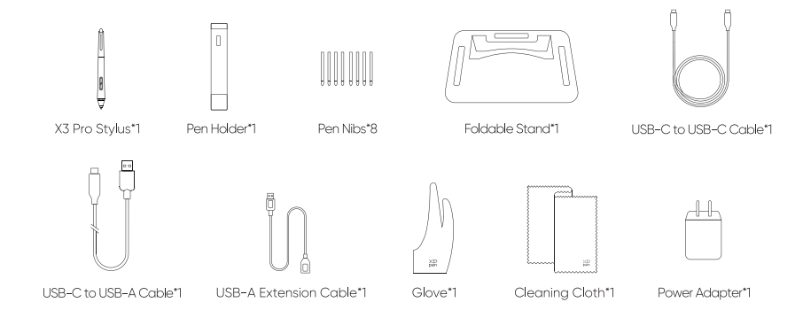 *전원 어댑터는 Artist 15.6 Pro V2의 액세서리에 포함되어 있으며, Artist 13.3 Pro V2에는 선택 사항입니다.