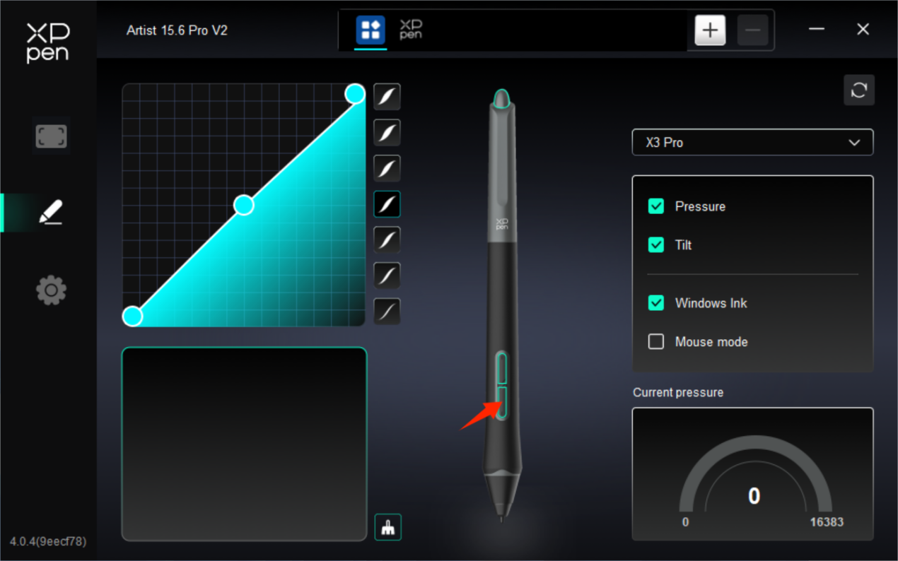 6) 드라이버의 펜 압력이 정상이면(Windows: 드라이버의 펜 설정에서 Windows 잉크가 활성화되어 있는지 확인) 드로잉 소프트웨어를 실행하고 다시 테스트합니다.