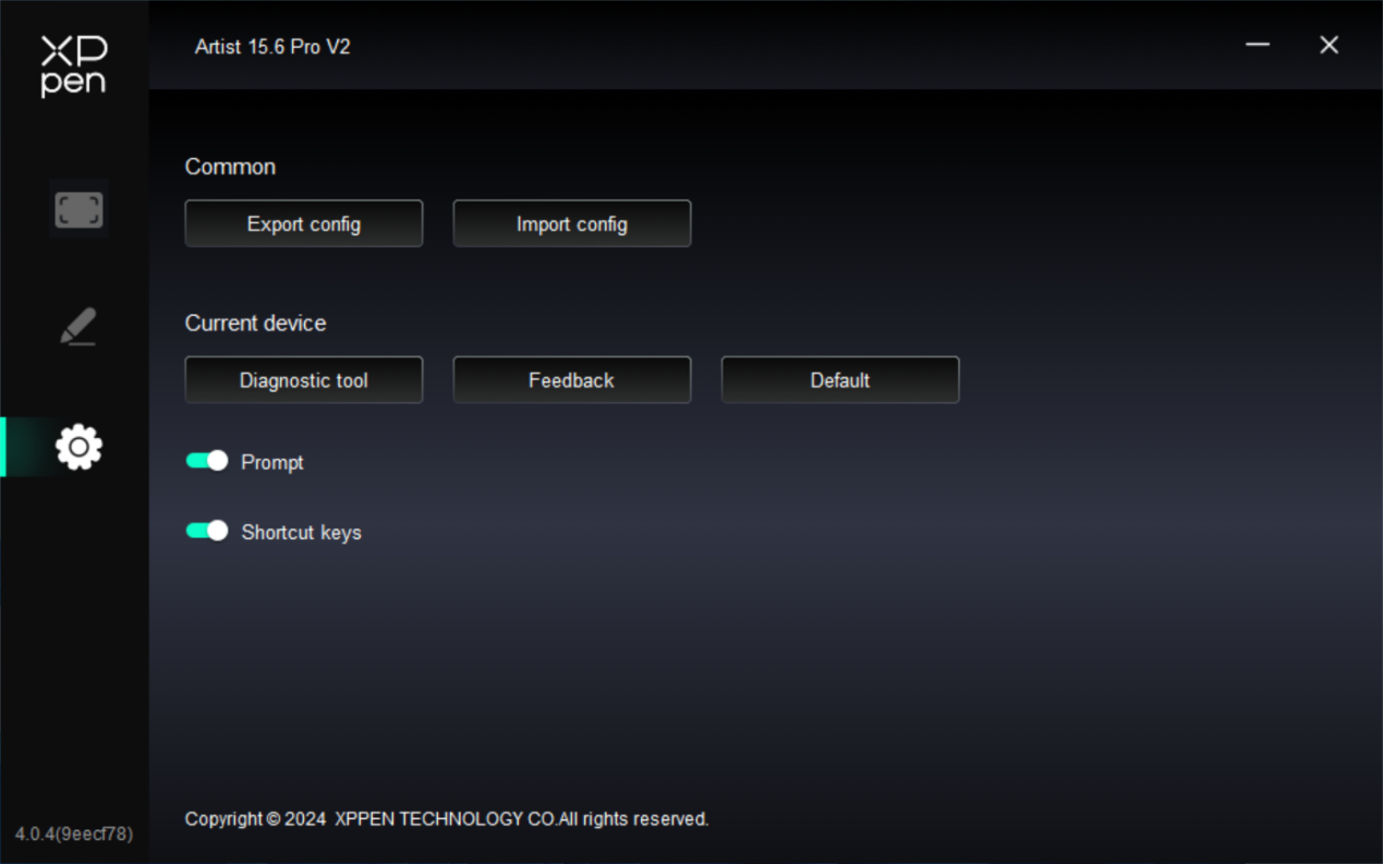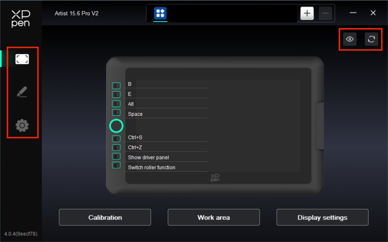 1. 왼쪽 메뉴 바의 아이콘을 클릭하여 드라이브 기능을 전환합니다. 위에서 아래로 순서대로 기기 설정, 펜 설정, 드라이브 설정입니다.