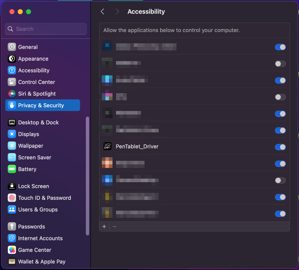 파일 압축을 풀고 "pkg" 파일을 실행하고 프롬프트에 따라 설치를 완료합니다. 시스템 설정 -> 개인 정보 보호 및 보안 -> 접근성으로 이동하여 PenTablet_Driver 옵션이 선택되어 있는지 확인하십시오. 그렇지 않으면 기기 및 드라이버가 제대로 작동하지 않을 수 있습니다.