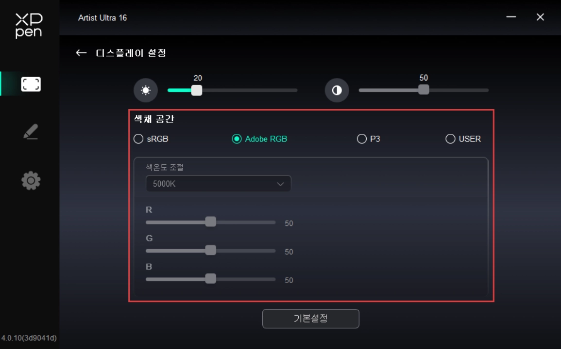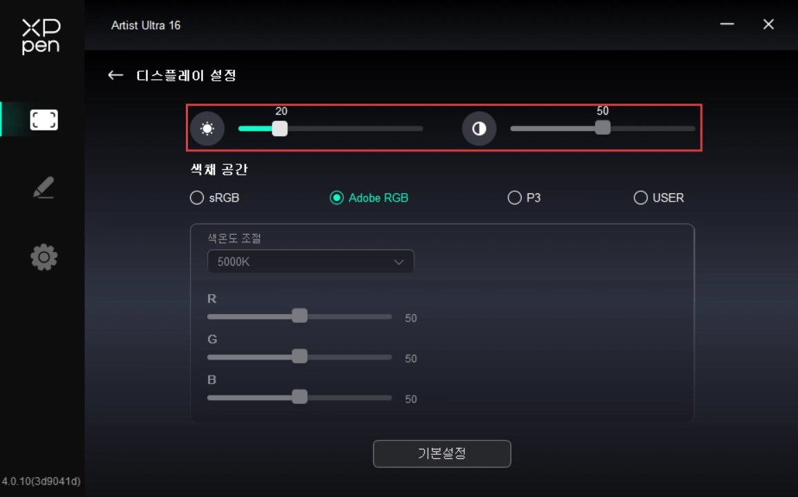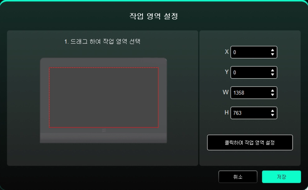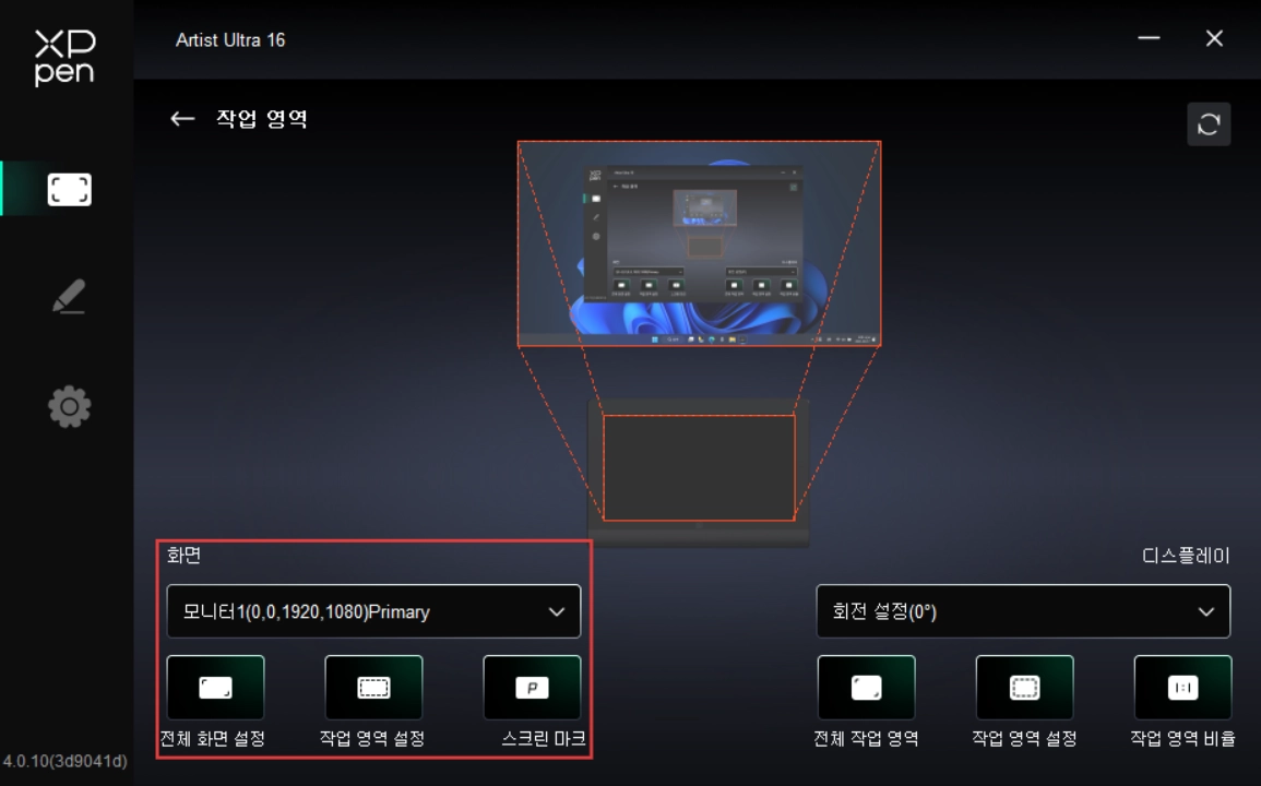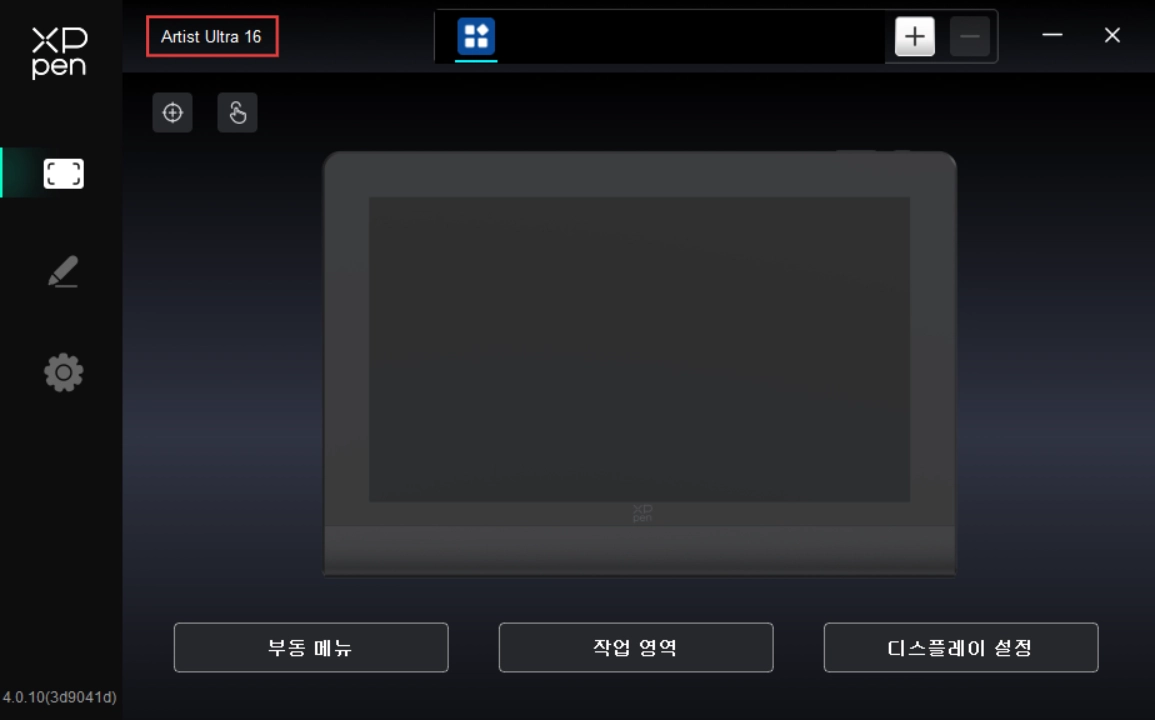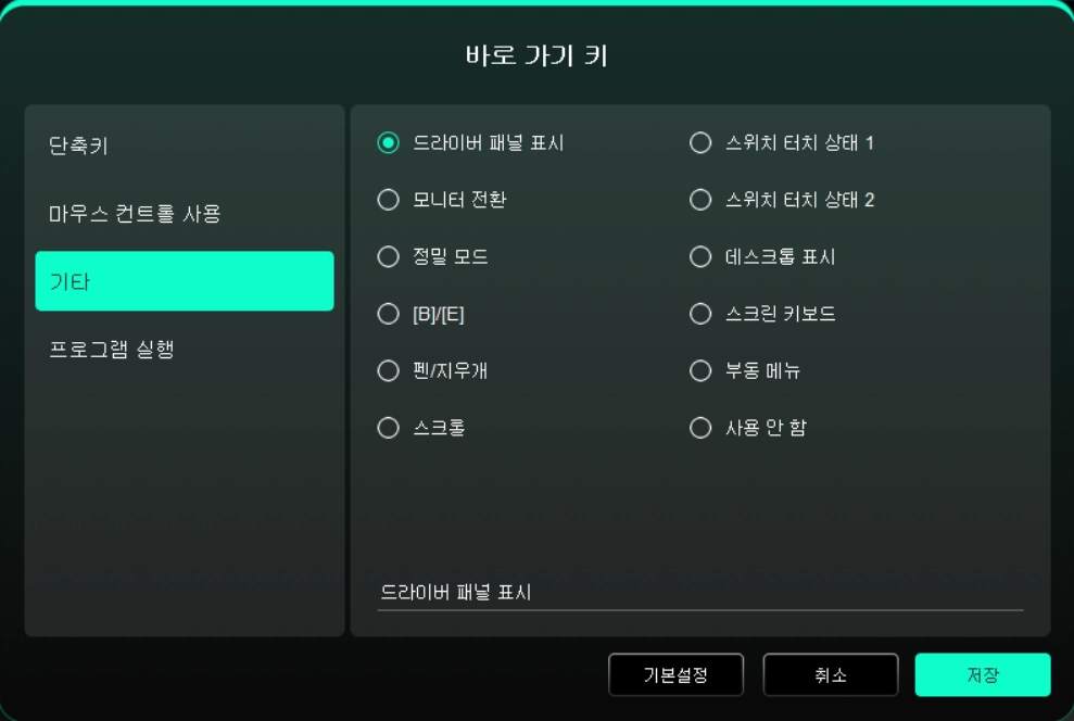 드라이버 왼쪽 아이콘을 클릭하면 드라이버 기능을 전환하여 액정 타블렛 관련 설정을 진행할 수 있습니다. 주요 항목: