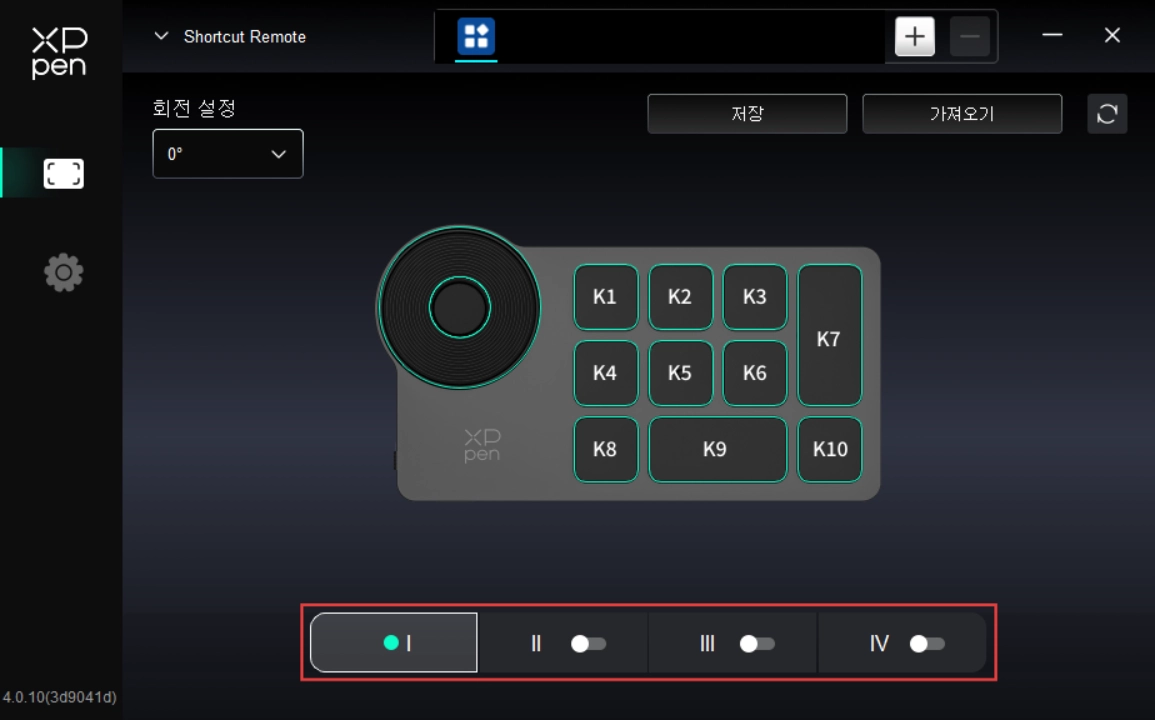 드라이버는 네 개의 단축키 그룹을 제공합니다. 기본적으로 첫 번째 단축키 그룹이 사용되며(비활성화할 수 없음), 다른 활성화되지 않은 단축키 그룹은 초기 기능이 첫 번째 그룹과 동일합니다. 각 단축키 그룹마다 서로 다른 기능을 사용자 지정할 수 있으며, 활성화한 후에는 '단축키 그룹 전환'(기본값은 K1 키이며, 다른 키로 사용자 지정 가능)을 통해 활성화된 각 그룹 간 전환이 가능합니다.