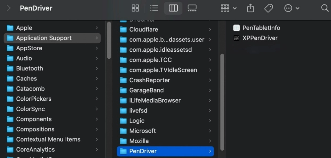 [가기]→ [앱]에서 XPPen를 찾아 'UninstallPenTablet'를 클릭하고 안내에 따라 진행합니다.