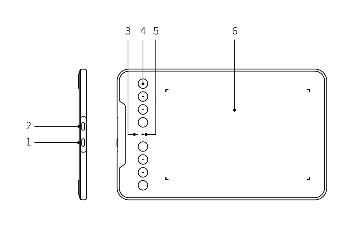 1) 기본 펜 타블렛 방향은 0°이며 작업 영역은 좌측으로 설정됩니다. 좌/중/우 위치 전환을 지원합니다.