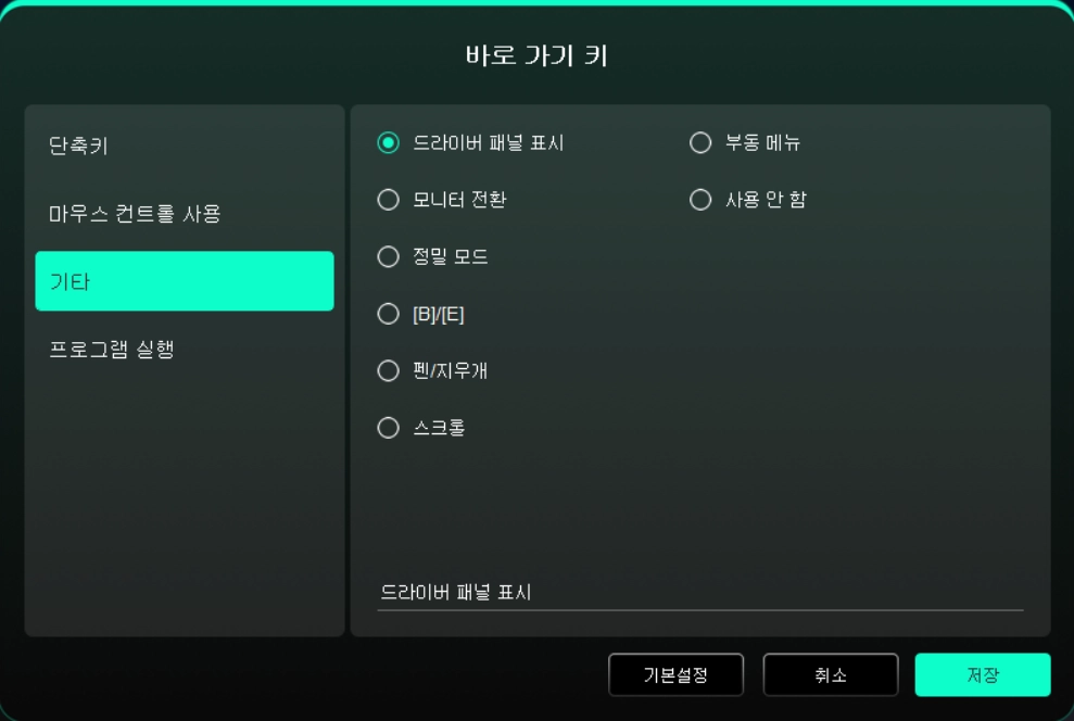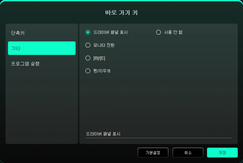 드라이버 패널 표시: 드라이버 설정 패널을 빠르게 표시