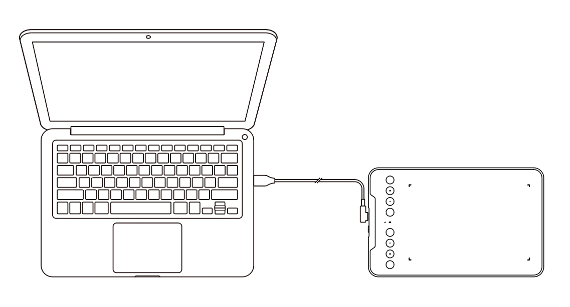 USB-A to USB-C 케이블을 컴퓨터 측의 USB 포트와 펜 타블렛 측의 USB-C 포트에 각각 연결하십시오.