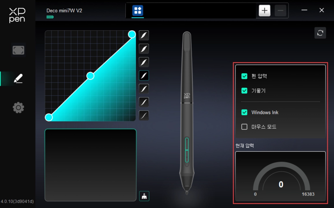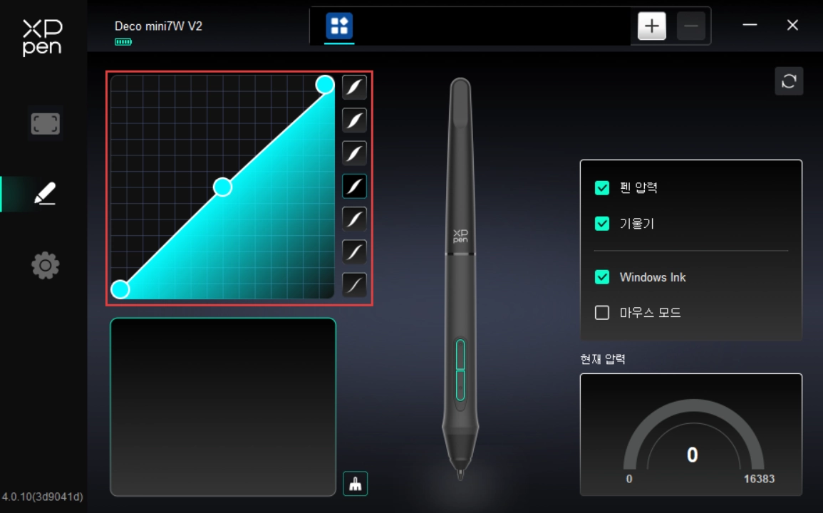 2. 펜 압력 곡선에 있는 점을 드래그하여 펜의 압력을 조절합니다.