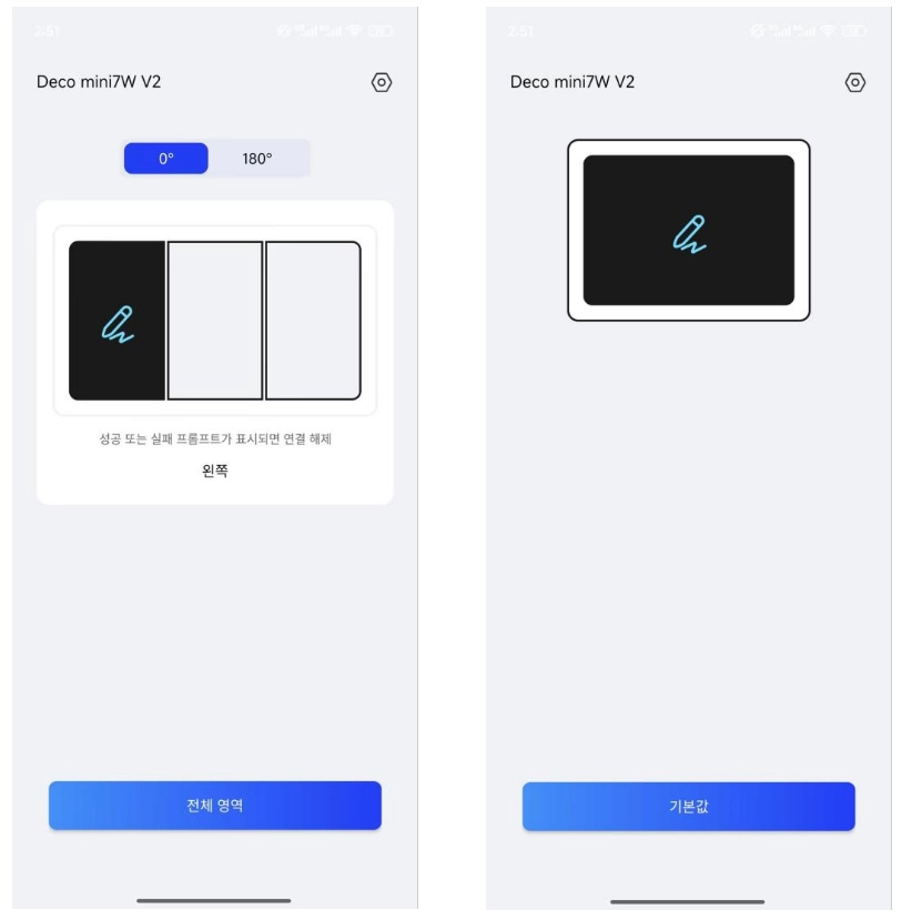 2) 펜 타블렛 방향을 0°/180°로 전환할 수 있습니다.